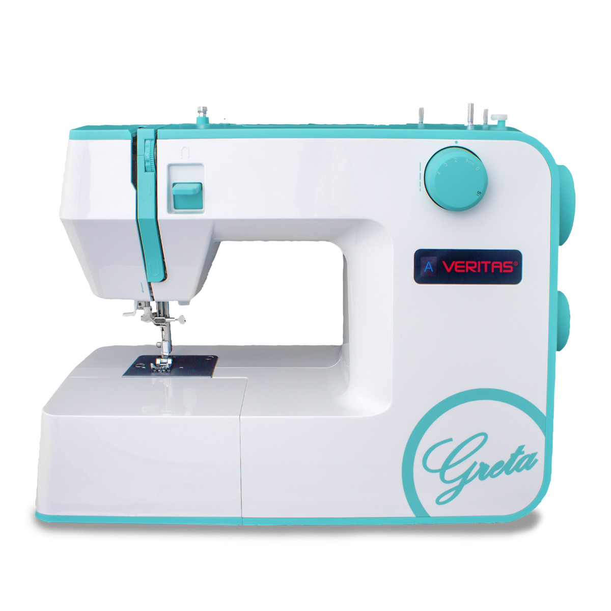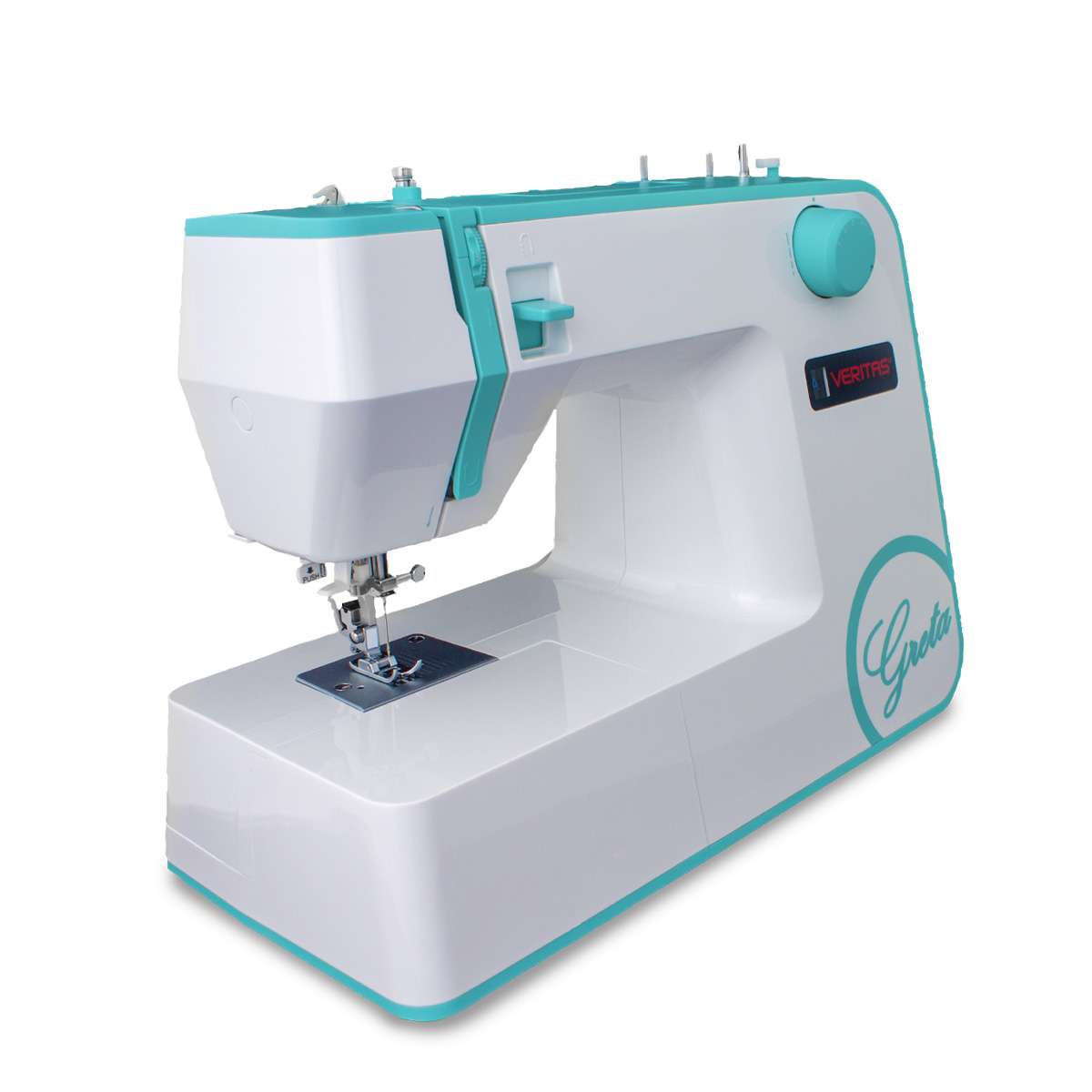 Wer kreativ arbeiten möchte, wird in der VERITAS Greta im formschönen Gehäuse und mit 19 Stichprogrammen die perfekte Begleiterin finden. Viele praktische Extras, wie die zwei integrierten Garnrollenstifte, das Schnelleinfädelsystem, der kraftvolle Motor und das blendfreie Nählicht machen das Nähen zu einem Vergnügen und die Ergebnisse zu reizenden Hinguckern.